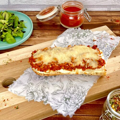 Baguette mit Tomaten-Sojafaschiertem-Soße