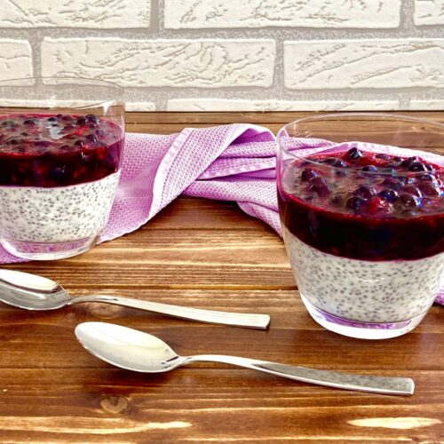 • Die Chiasamen mit dem Joghurt vermischen und auf zwei Gläser aufteilen.