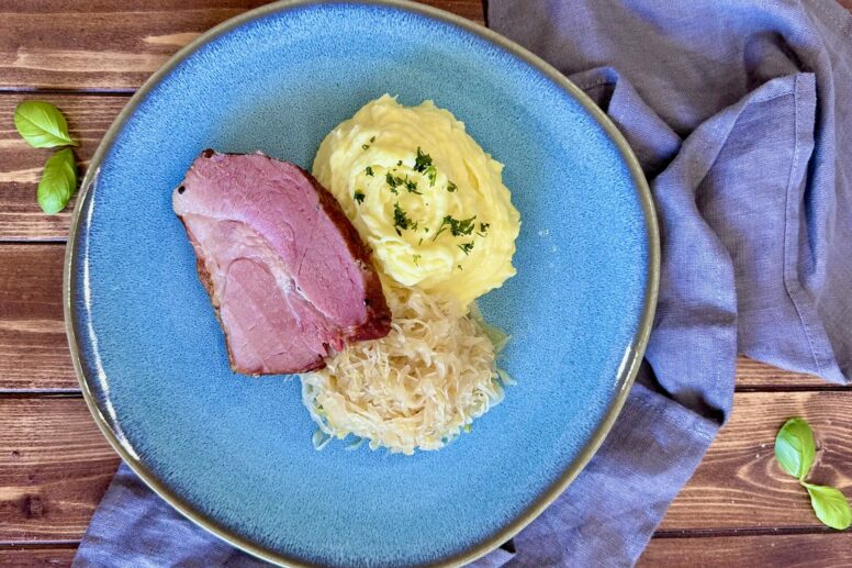 Geselchtes mit Kartoffelpüree und Sauerkraut