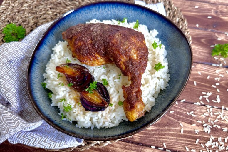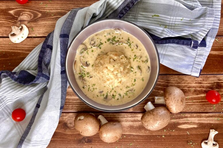Schweinefilet in Zwiebelsoße mit Kürbis-Kartoffelpüree