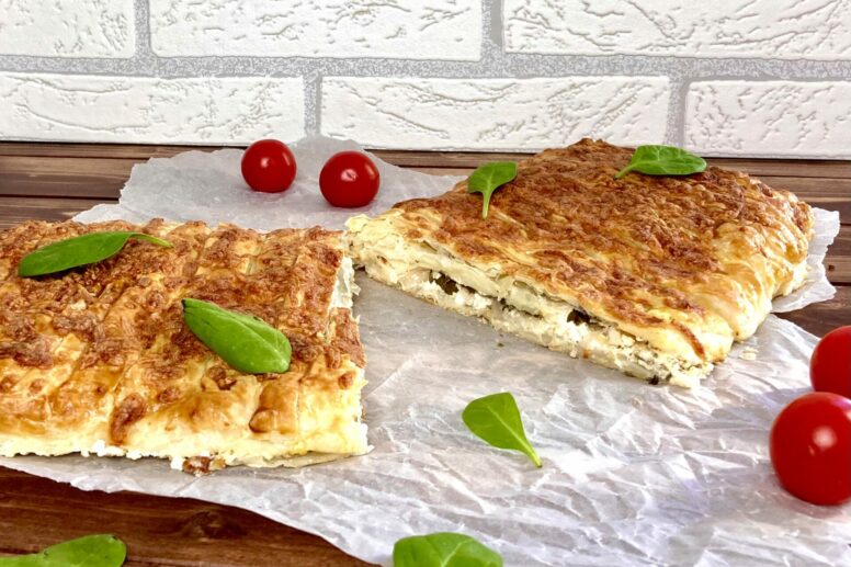 Blätterteigstrudel mit Cottage Cheese und Blattspinat
