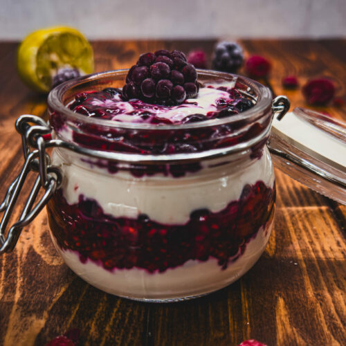 • Den Rest vom Frischkäse Joghurt und dann die Beeren drauf geben.