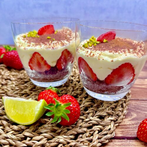 - Minze, Erdbeeren und Backkakaopulver zum Garnieren