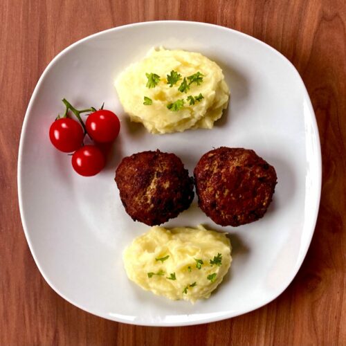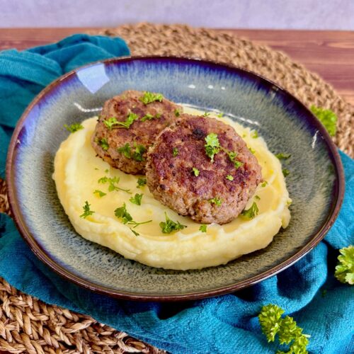 Meal Prep: Die faschierten Laibchen können sehr gut eingefroren werden. Das Kartoffelpüree kann man nicht einfrieren.