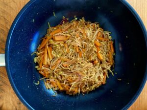 • Die Flüssigkeit verkochen lassen und nochmals kurz anbraten.