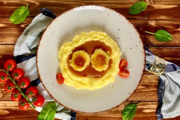 - Schlagobers dazugeben und kurz köcheln lassen, bis sich alles mit der Soße verbindet.