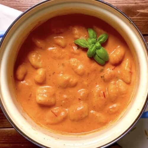 Gnocchi in Paprikacremesoße mit Hühnchenstücken