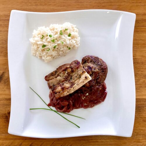 • 4 Stück Grillfleisch (Bereits fertig angebraten vom Grill oder noch roh)