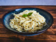 • Die Zwiebeln schälen und in Streifen schneiden.