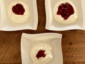 • In der Zwischenzeit die Himbeeren in der Mikrowelle auftauen.