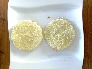 • Wenn der Kuchen ausgekühlt ist, werden mit einem Glas 4 Ringe ausgestochen.