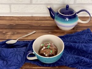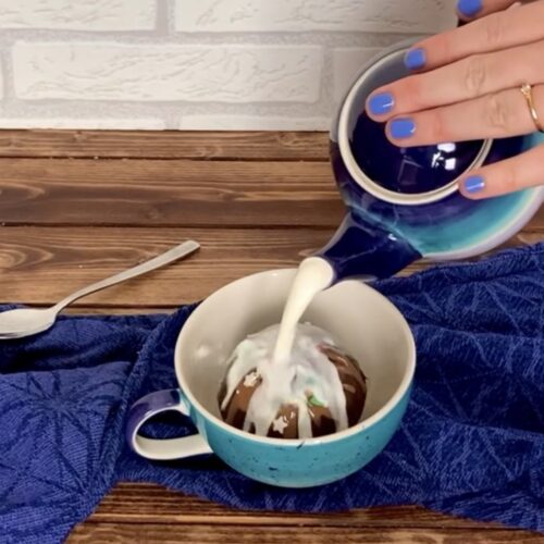 • Die heiße Milch über die Schokokugel leeren und schon ist die heiße Schokolade fertig.
