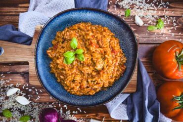 • Den Zwiebel klein hacken und in einem Topf in etwas Sonnenblumenöl anbraten.