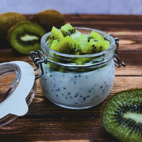 • Das Joghurt mit Chiasamen, Haferflocken und Kokosflocken vermischen und auf Wunsch süßen mit Honig.