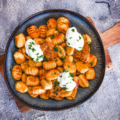 • Gnocchi mit Olivenöl und den Gewürzen vermischen.