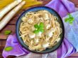 - Den Butternusskürbis schälen und Scheiben runterschneiden (2cm dick).