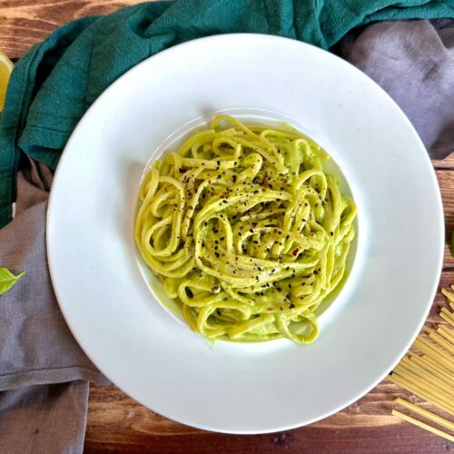 • Die Avocado halbieren, den Kern entfernen und mit einem Löffel das Innere von der Schale herauslösen.