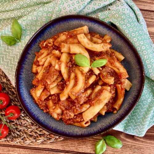 Nudeln in Champignon-Walnuss-Bolognese-Soße