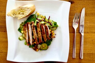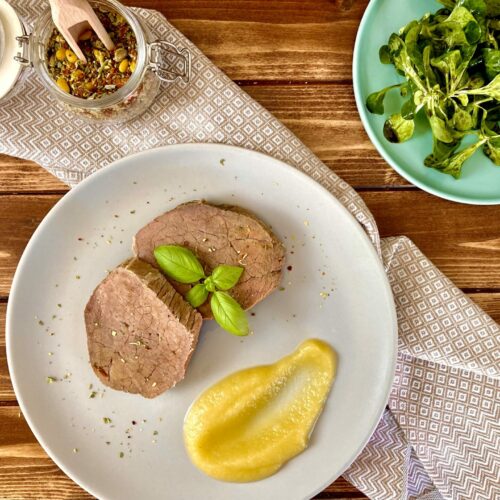 Rindfleisch mit Apfelmus, Salat und Semmelkren