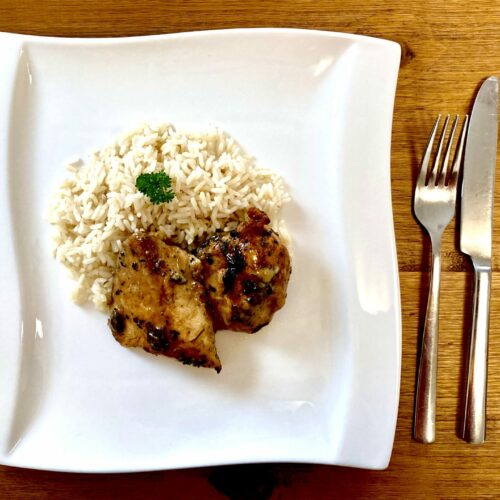 • In der Zwischenzeit noch den Reis in etwas Salzwasser kochen.