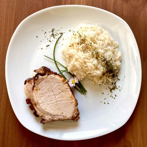 Schweinebraten mit Kruste & Reis