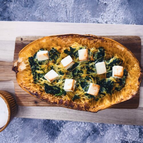 Spaghetti-Kürbis mit Spinat-Feta-Füllung