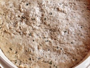 - Mindestens 1 Stunde aufgehen lassen. (Es kann auch länger aufgehen. Wenn man den Teig z.B. am Vortag zubereitet, kann man ihn im Kühlschrank aufgehen lassen und am nächsten Tag 1 Stunde vor dem Gebrauch aus dem Kühlschrank nehmen.)