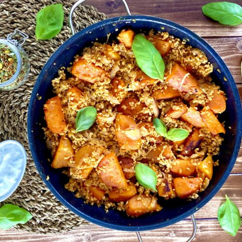 Süßkartoffel – Soja Faschiertes Bratpfanne