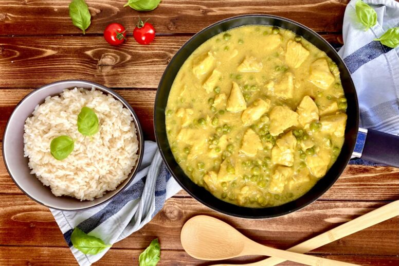 Hühnchen Curry in Kokosmilch-Erbsen Soße