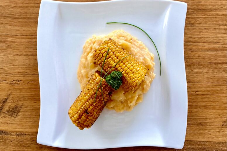 Kartoffelpüree mit Tomatenpesto & gebratenen Maiskolben