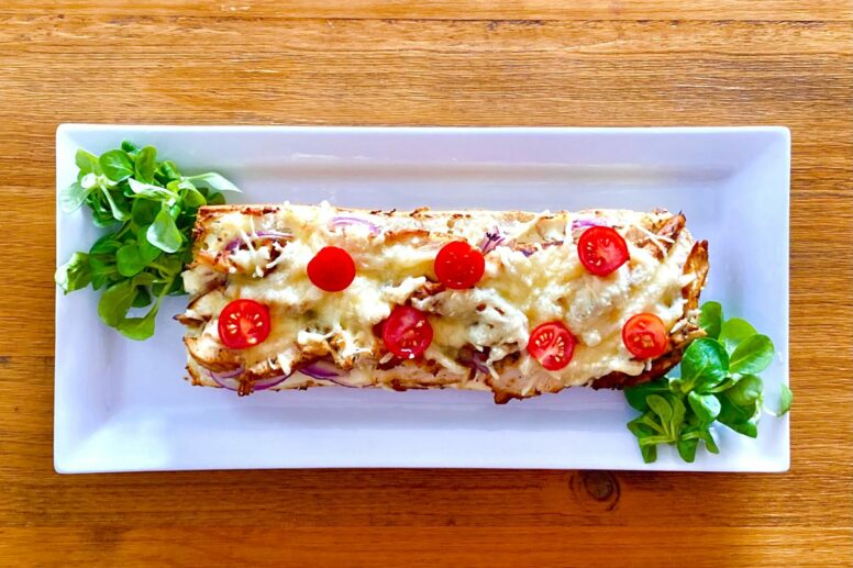 HauptgerichteKnusprig überbackenes Baguette mit Hühnchenstreifen