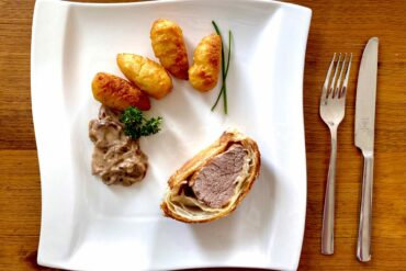 - Aus dem kalten Kuchen Ringe ausstechen.