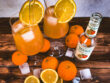 - Dann eine halbe Scheibe Blutorange in jedes Glas geben.