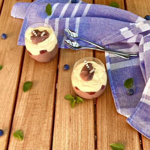 • Das Dessert mindestens 30 Minuten kühl stellen, damit es noch durchziehen kann.